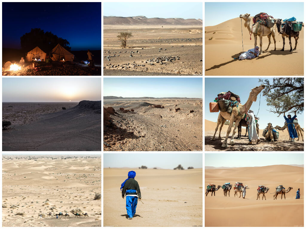 • Expérience authentique avec caravane de dromadaires et bivouacs nomades dans le Sahara marocain.